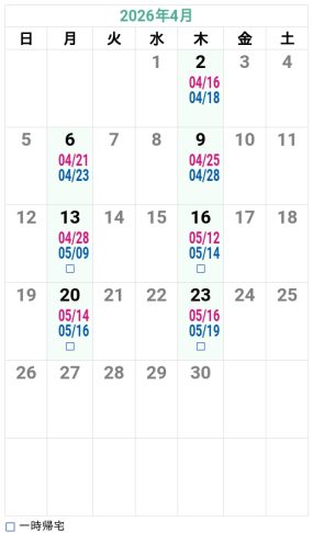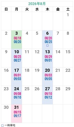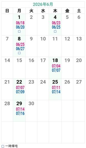 - ※規定宿泊数を超えた場合、宿舎を移動していただくことがあります。