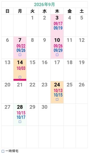 9/18はMTのみ一時帰宅 -