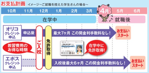 - ポイント1 在学中に免許取得!お支払いは春から(最長6ヶ月内)