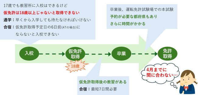 例えば3月下旬に18歳のお誕生日を迎える方にとっては、3月中の運転免許取得はとても難しい状況です。