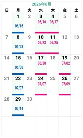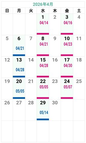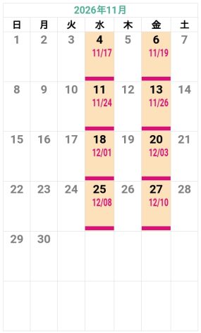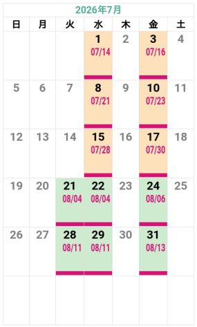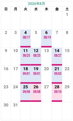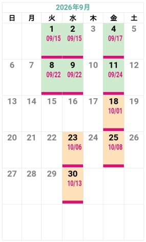 ’26夏秋 秋田北部自動車学校 入校カレンダー