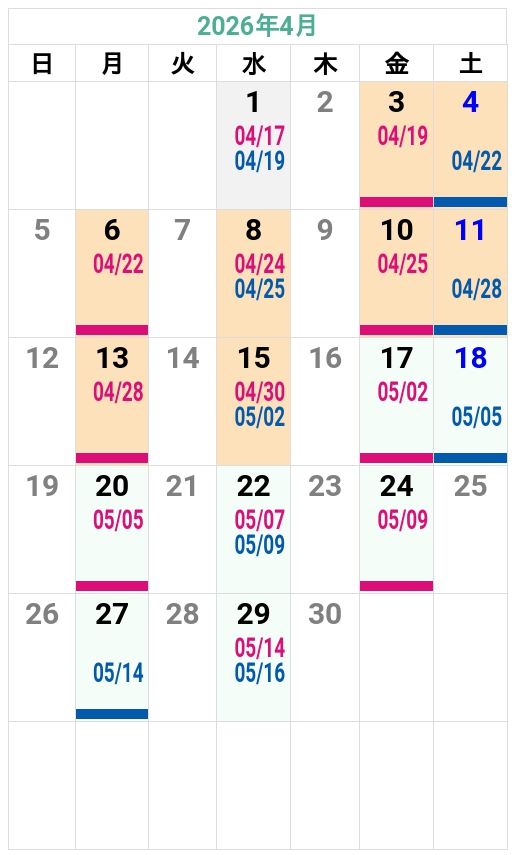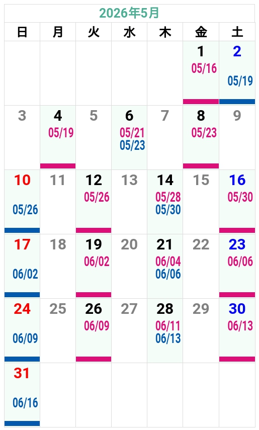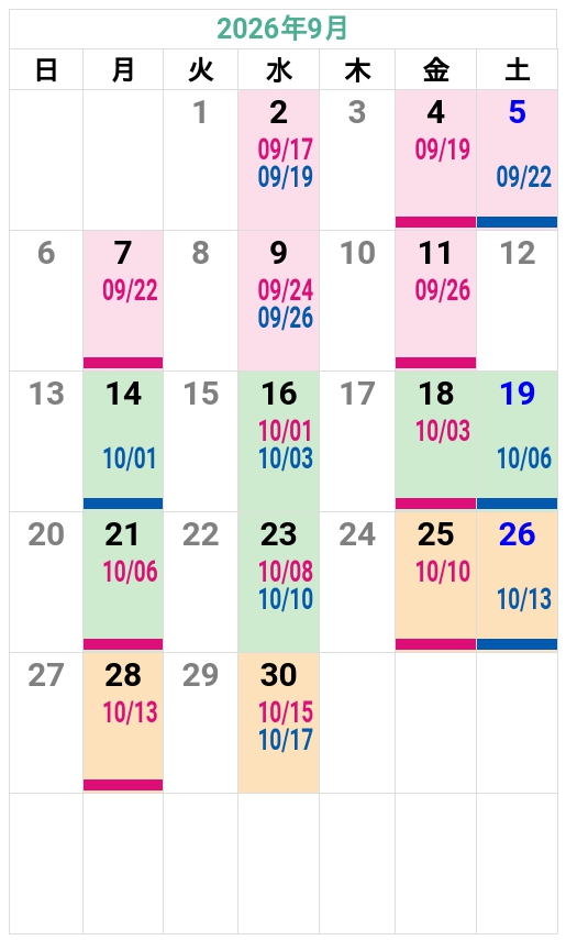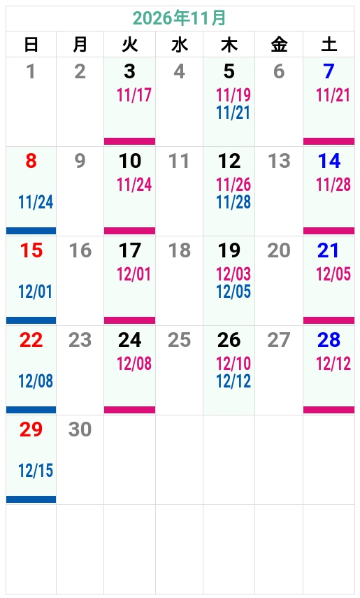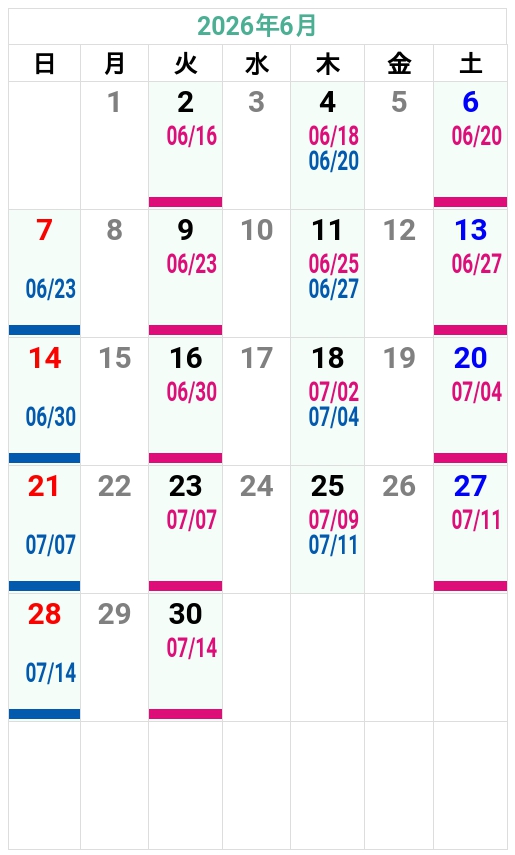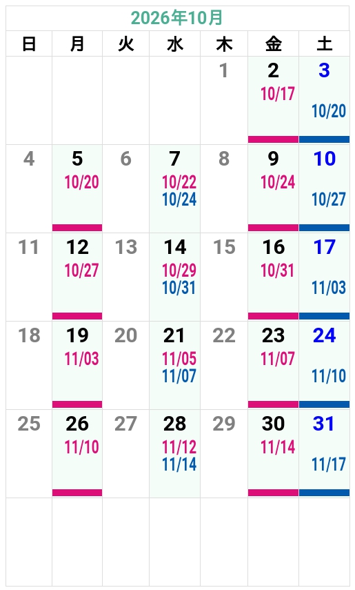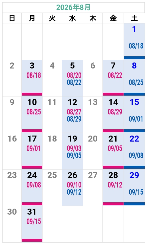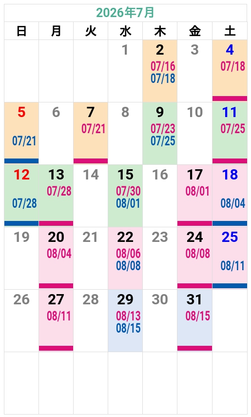 ’26夏秋 友部自動車学校 入校カレンダー