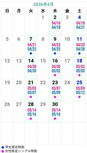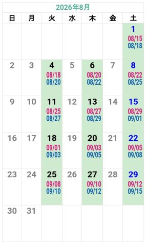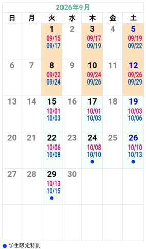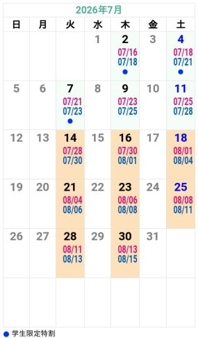 ’26夏秋 掛川自動車学校 入校カレンダー
