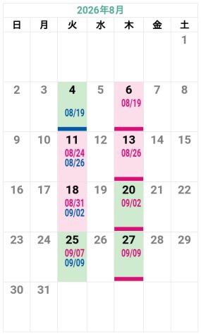 ’26夏秋 マジオドライバーズスクール和歌山校 入校カレンダー