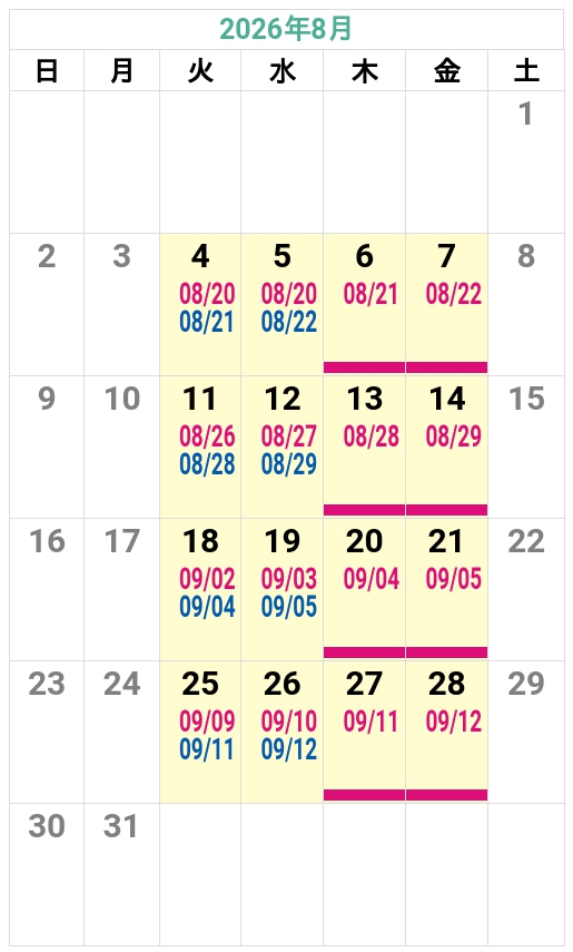 ’26夏秋 MAXドライビングスクール千曲 入校カレンダー
