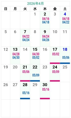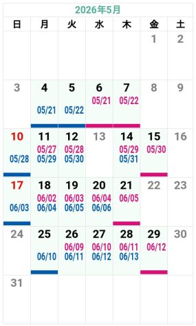 ’26冬春 平泉ドライビングスクール 入校カレンダー